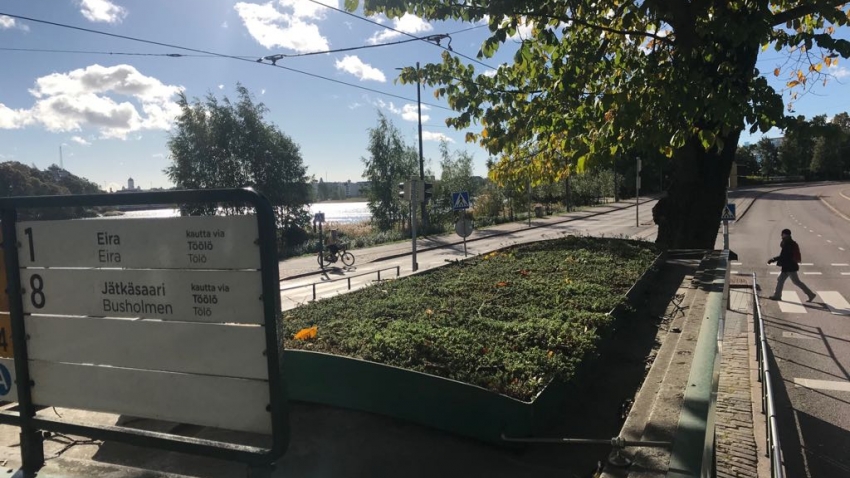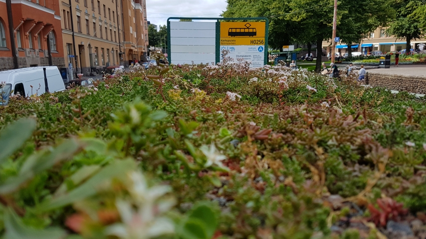 Sedummatta har installerats på följande spårvagnshållplatser i Helsingfors: Björnparken, Brunnsparken, Riddarhuset, Salutorget, Stadsträdgården.