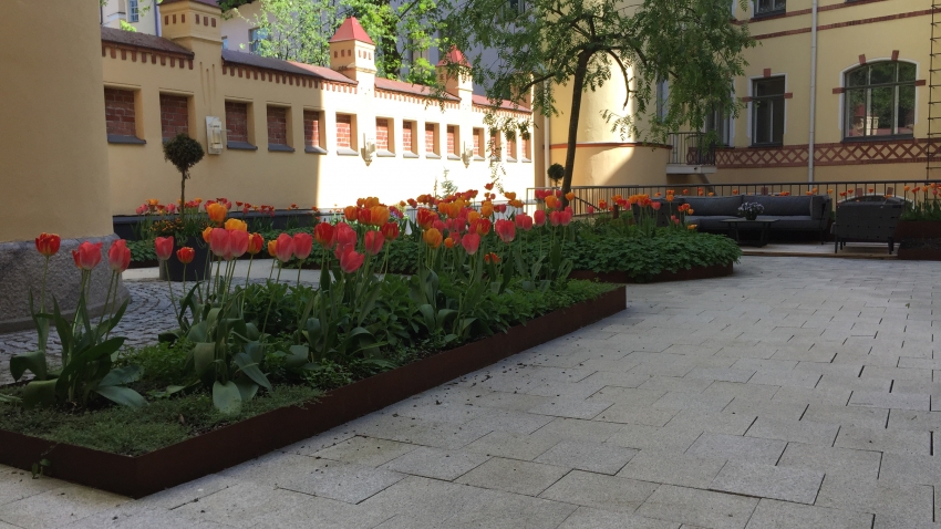 Toteutuksessa käytetty Milford reunalistaa, Diadem kennoja, Plantex maakatekangasta.