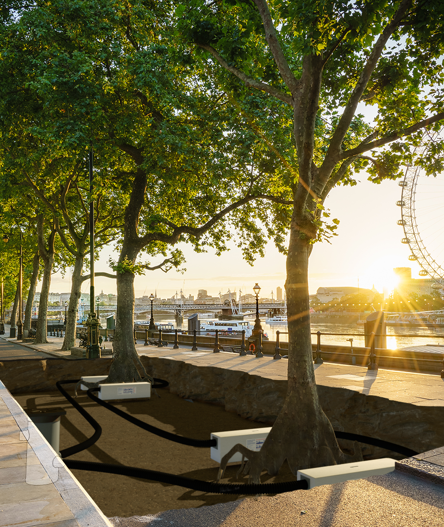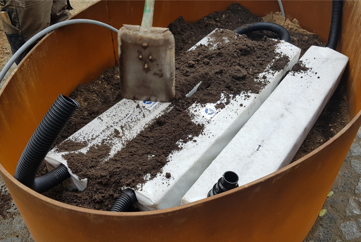 • Puiden yhteydessä – CoreBlue™ muodostaa maanalaisen vesivaraston, joka vapauttaa veden suoraan juuristoon.