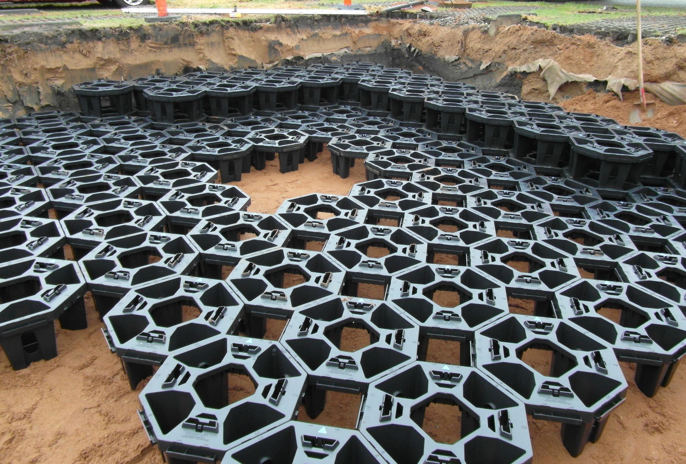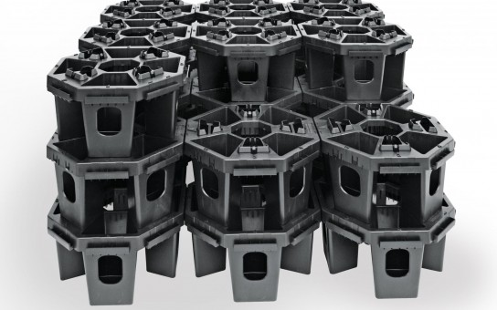- juuristoystävällinen kantava rakenne, valmistettu kierrätysmuovista. Lukittuu sekä pysty- että vaakasuunnassa. Kestää yli 300 kPa pystysuuntaisen kuormituksen.