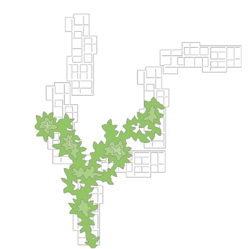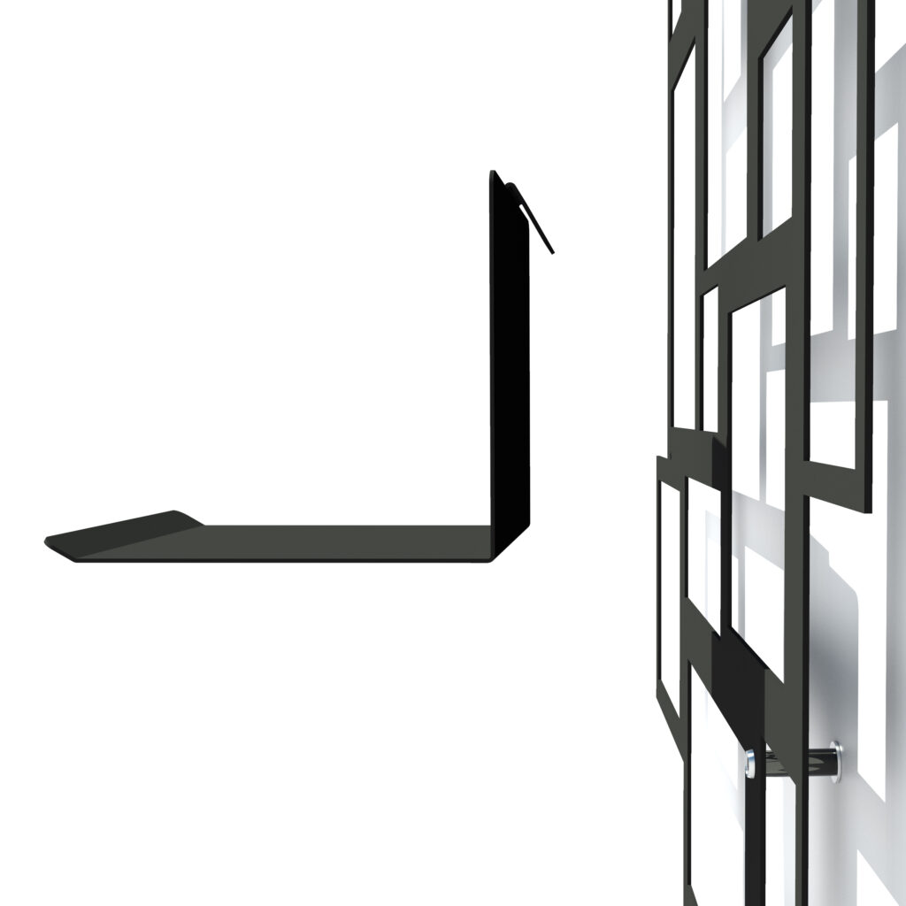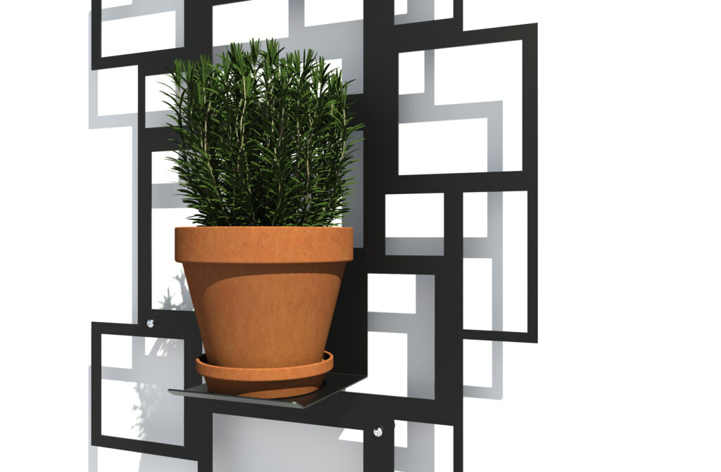 Kapean leveytensä ansiosta L. A. sopii hyvin myös kapeille seinille ja kulmiin. Pienille tasoille voidaan asettaa ruukkukasveja, jotka herättävät rakenteen luonnollisen ilmeen eloon. Tasot voidaan ripustaa mihin tahansa vaakasuoraan kohtaan rakenteessa.