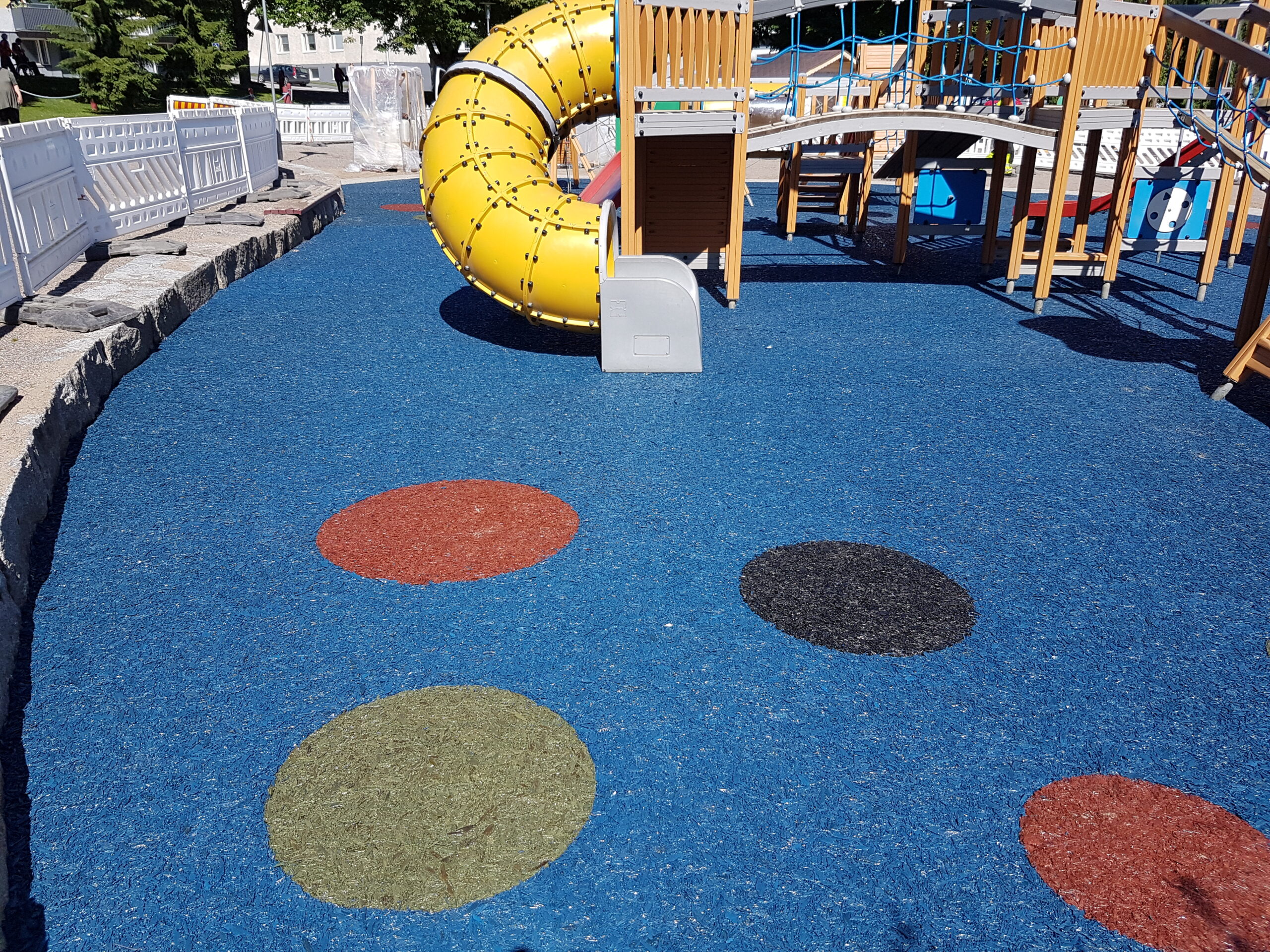 Ecosurface turva-alusta asennettu Valkeisen puiston leikkipaikalle