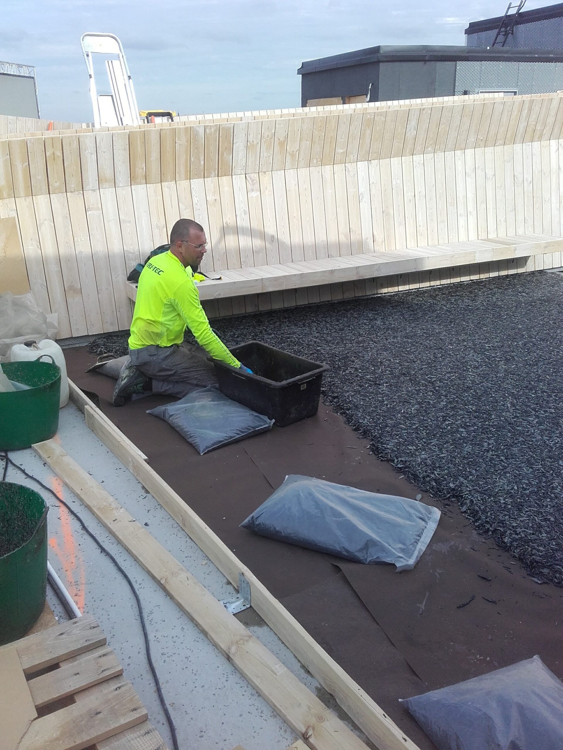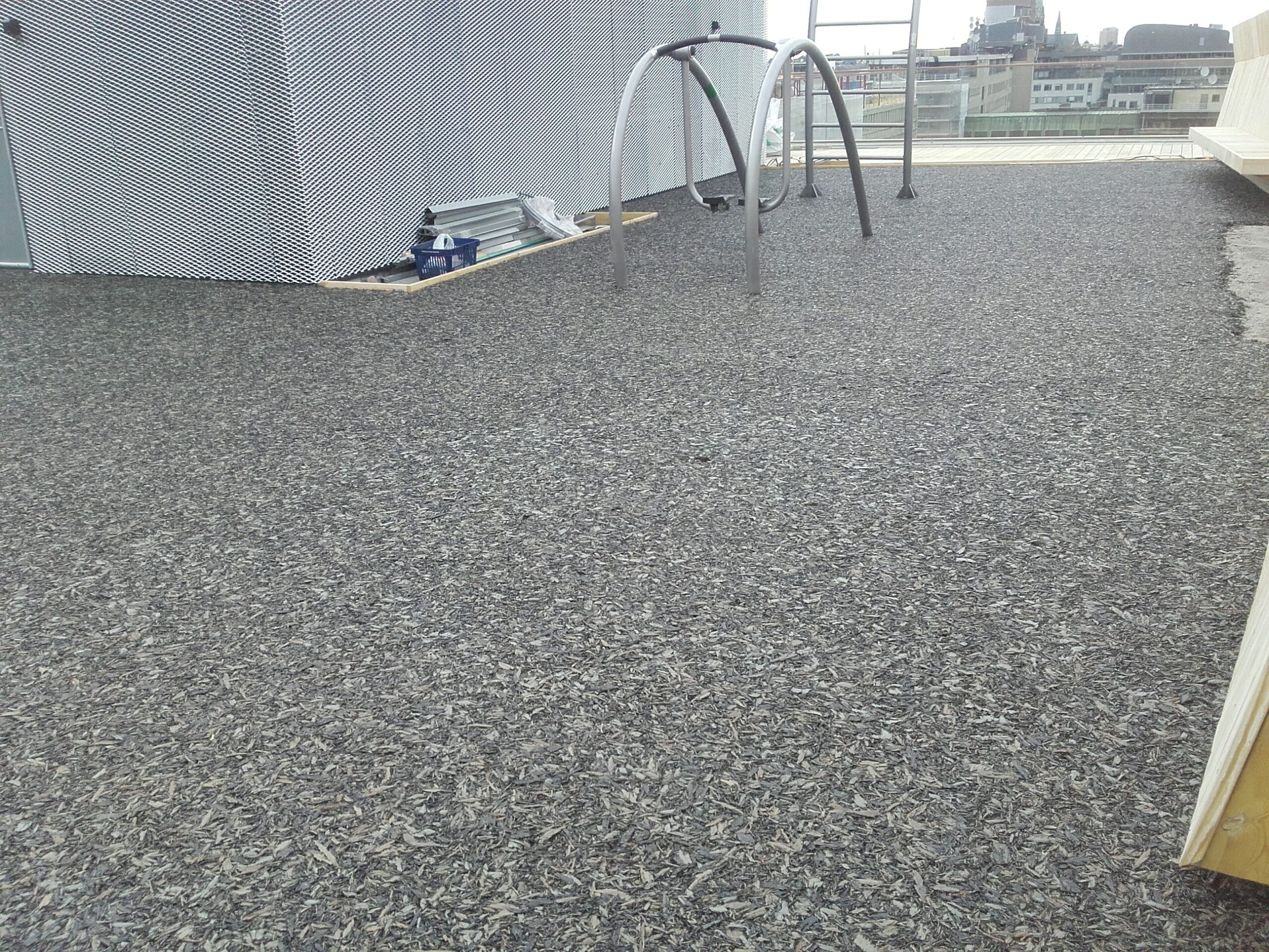 Kauppakeskuksen katon oleskelualueelle on asennettu Ecosurface-alustaa.