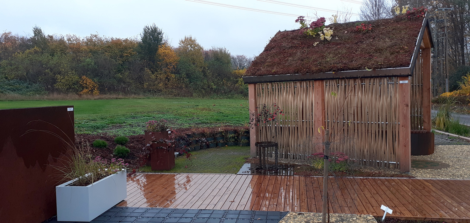 Paviljonki ympäristöineen esittelee Eg-Trading Oy:n tuotteita.