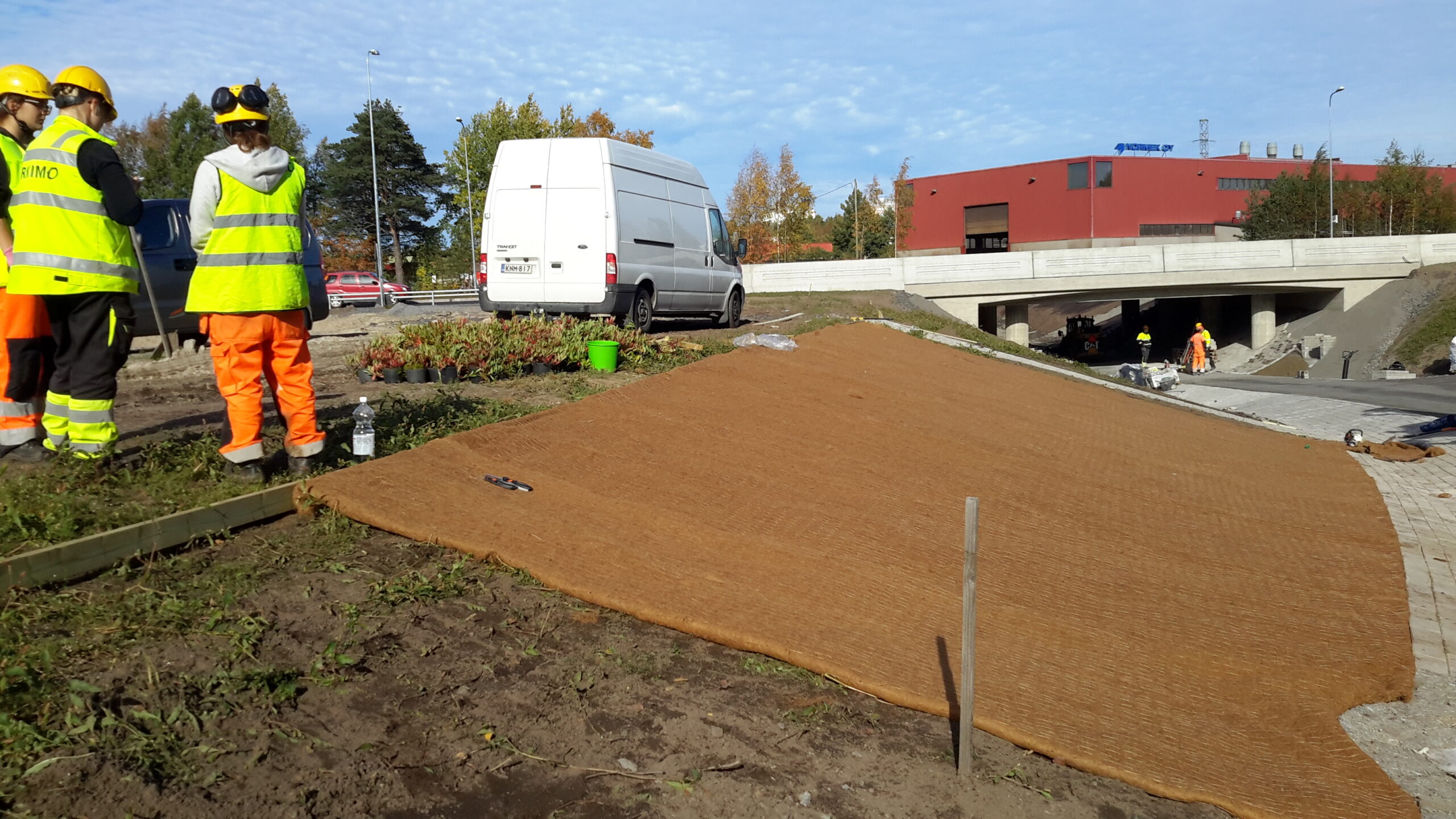 Greenfix 10 eroosiomaton asennusta rinteeseen.