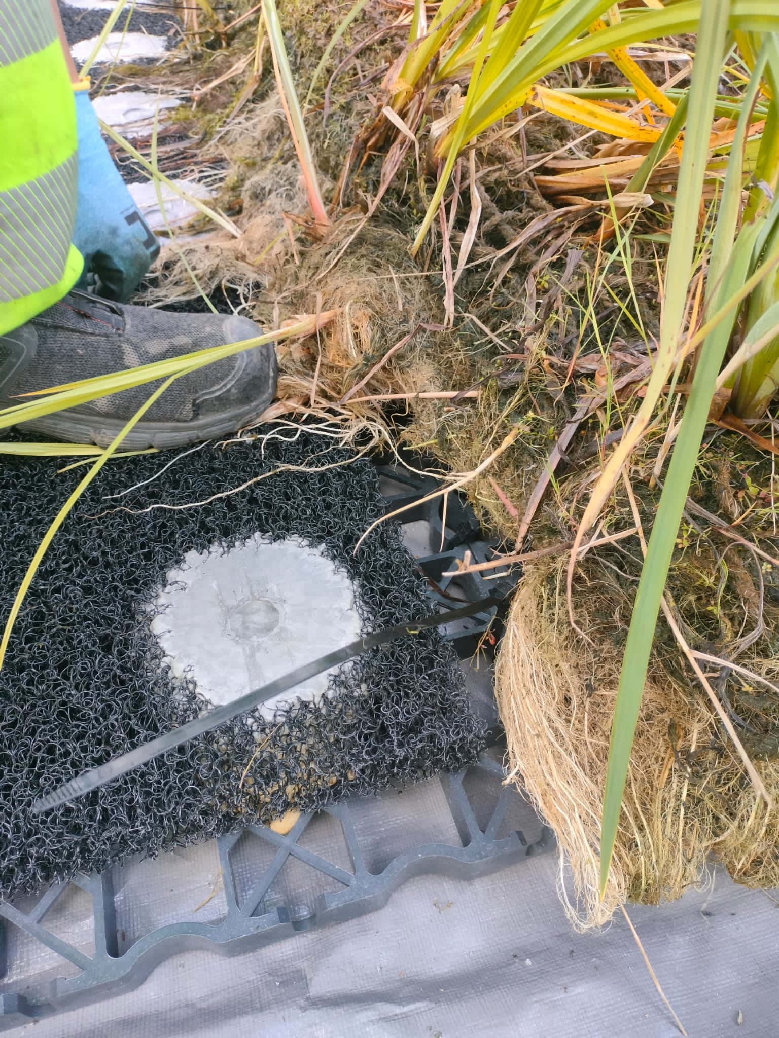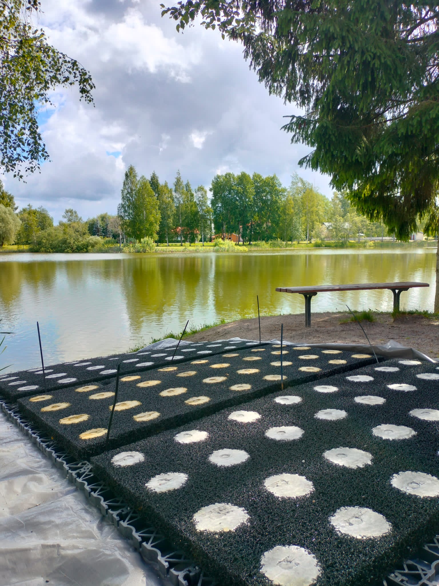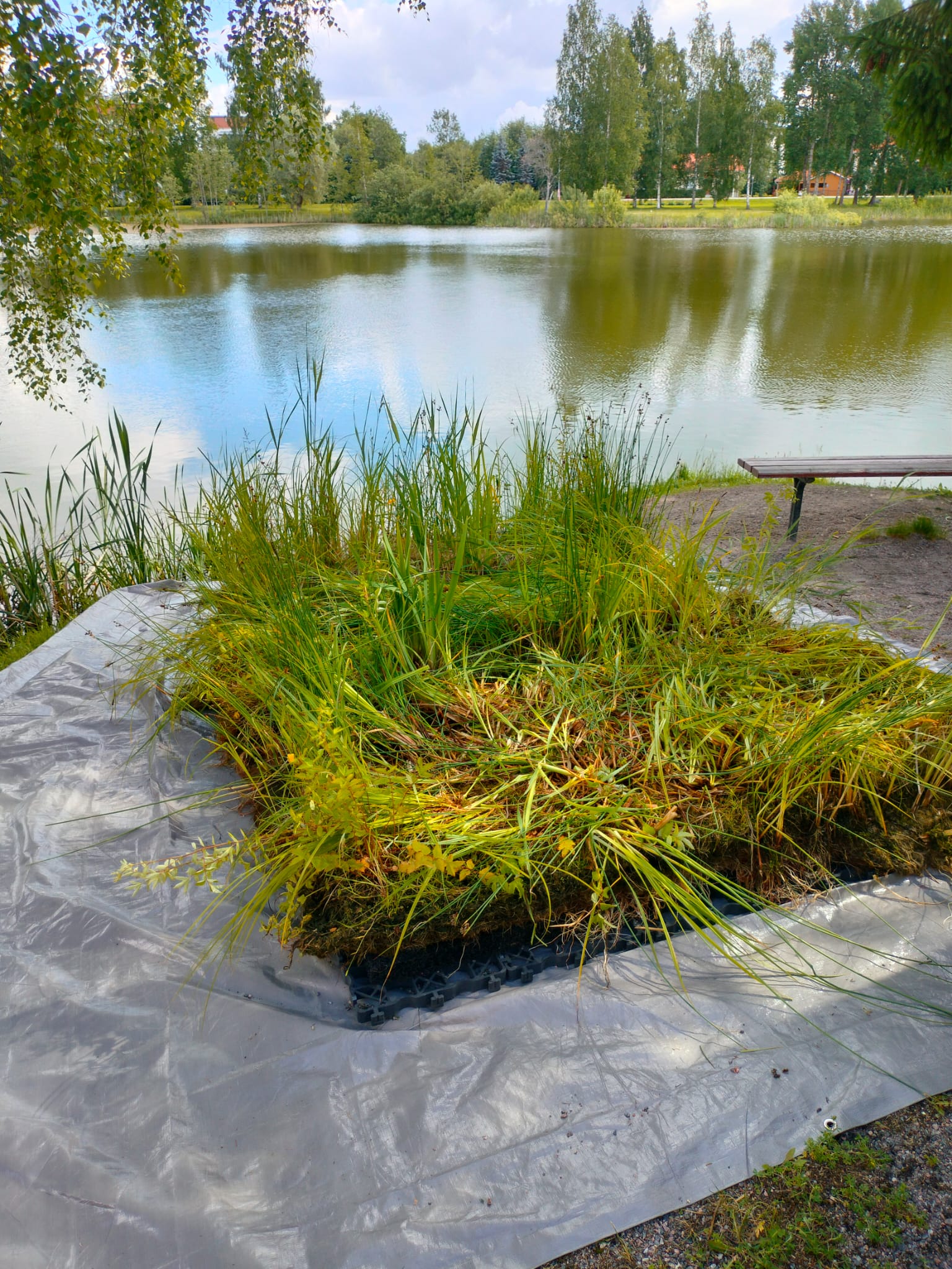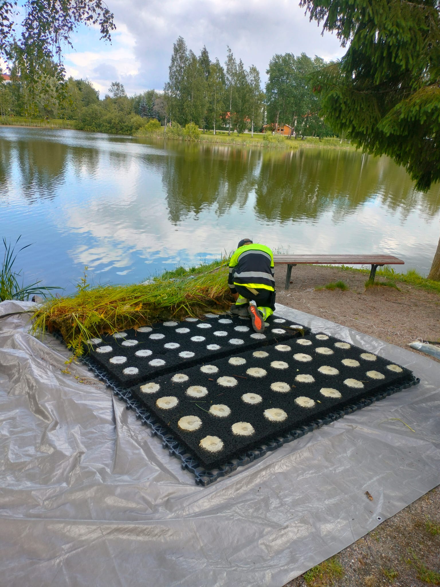 Lintusaari – Ecoraster-kennosto ja vesikasvillisuusmatto