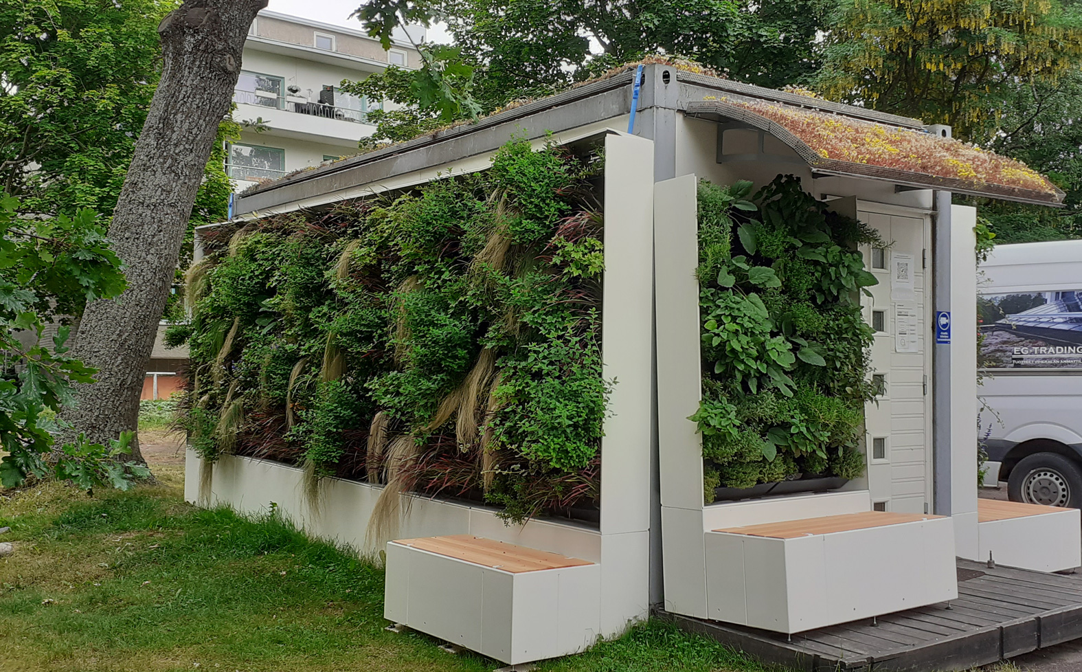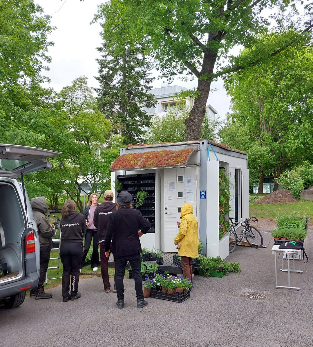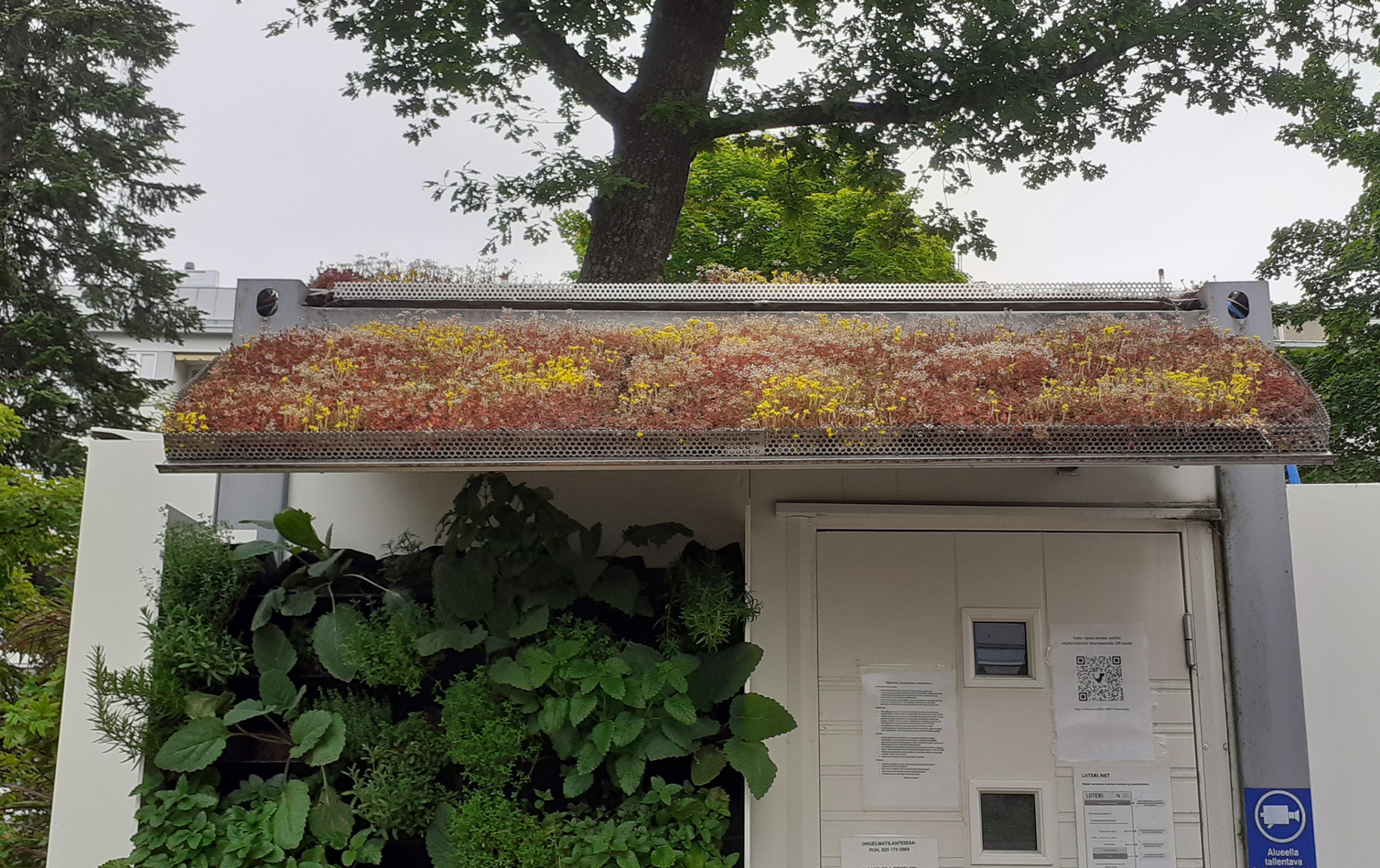 Helsingin Lauttasaaressa toteutettiin kokeilu, jossa yhteiskäyttöön tarkoitettu kontti maisemoitiin viherkatolla ja -seinillä. Viherkaton toimitti Eg-Trading Oy ja viherseinät Innogreen – Green House Effect Oy.