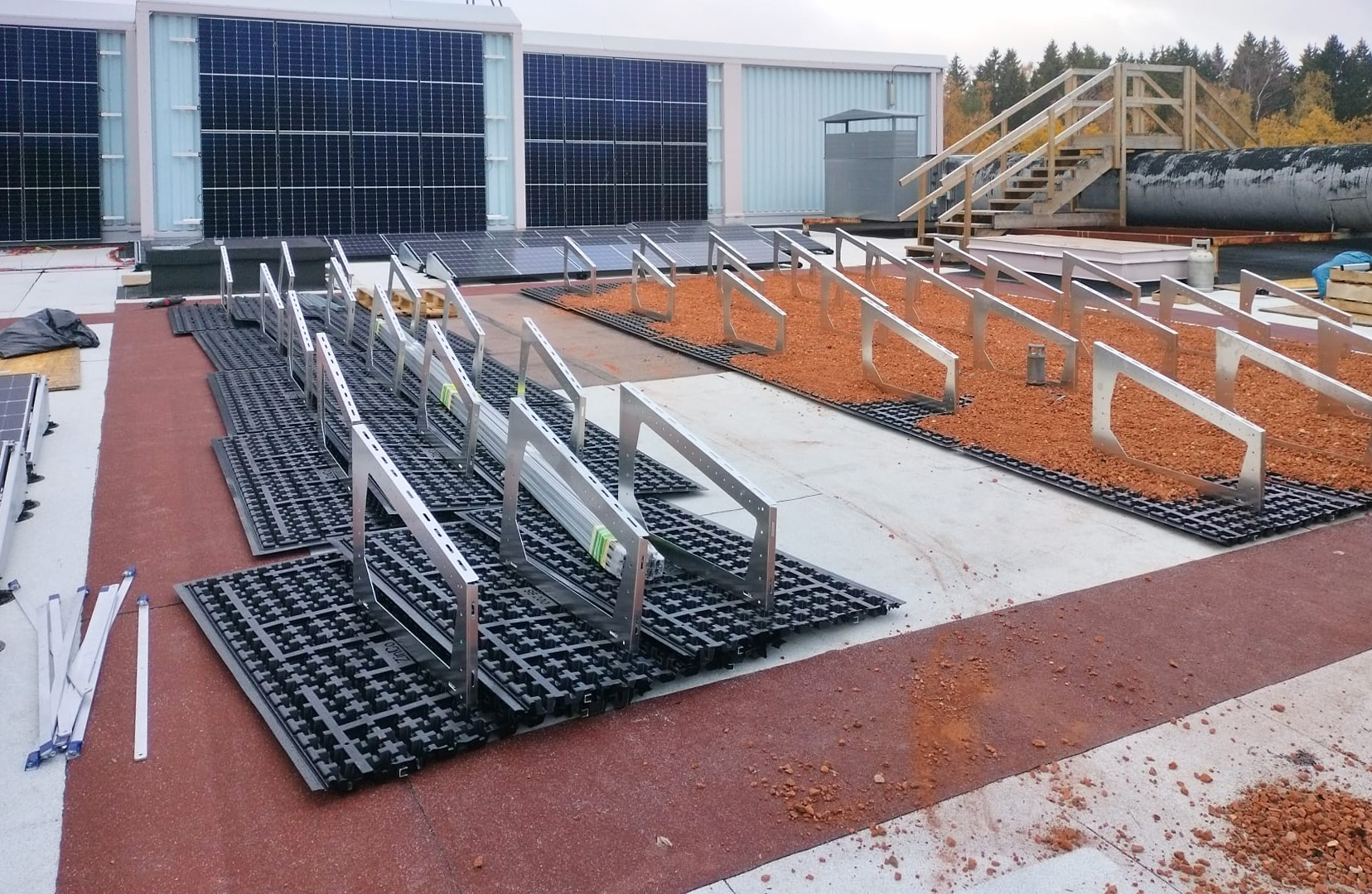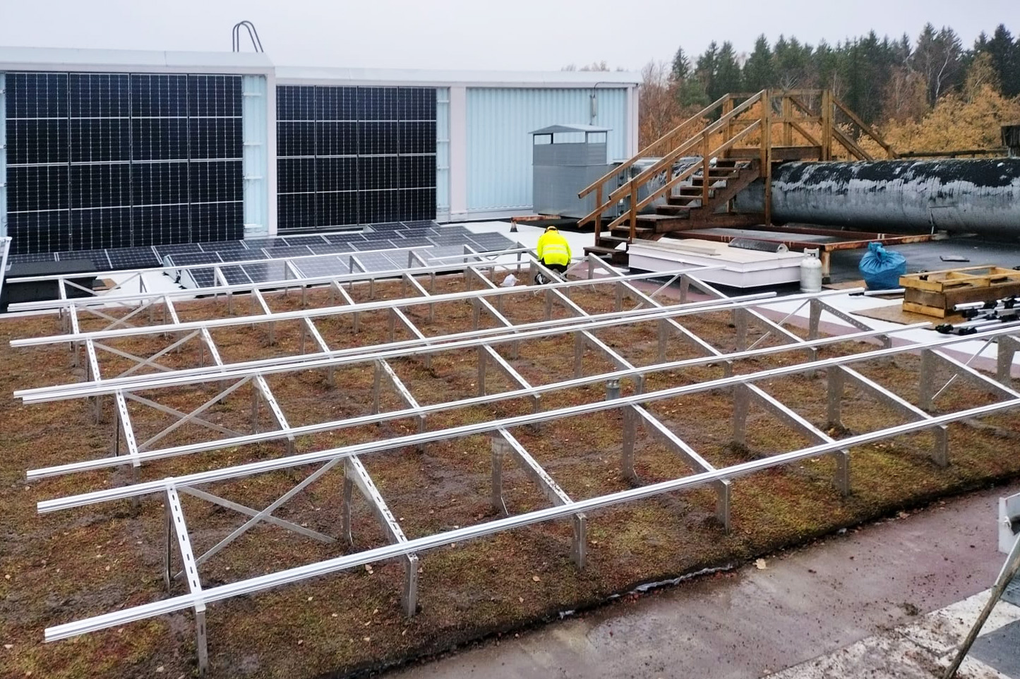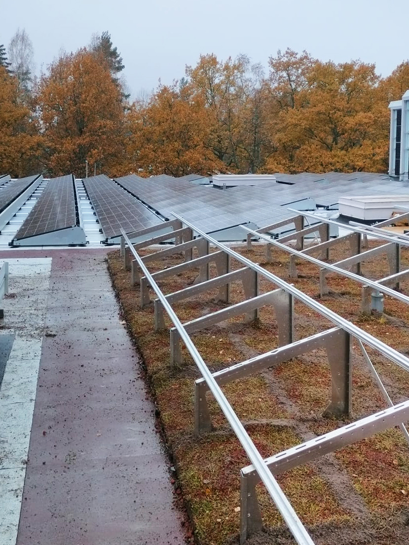 Nordic Green Roof® maksaruohoviherkatto ja Zinco Solar Base aurinkopaneelien tukirakenne