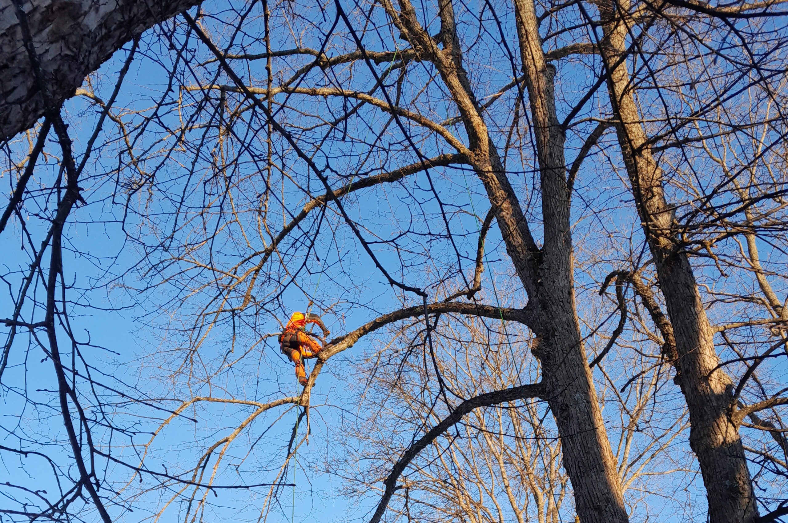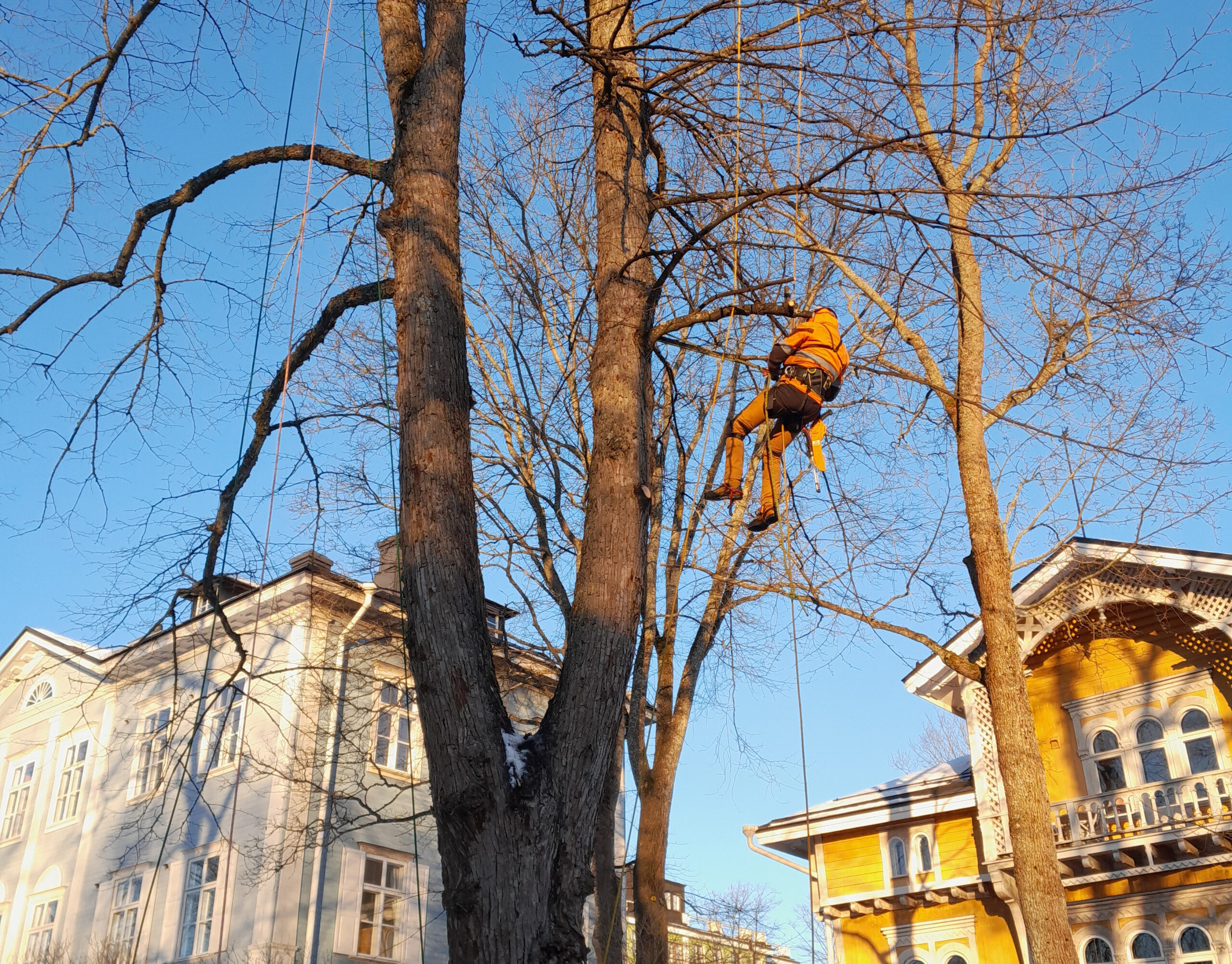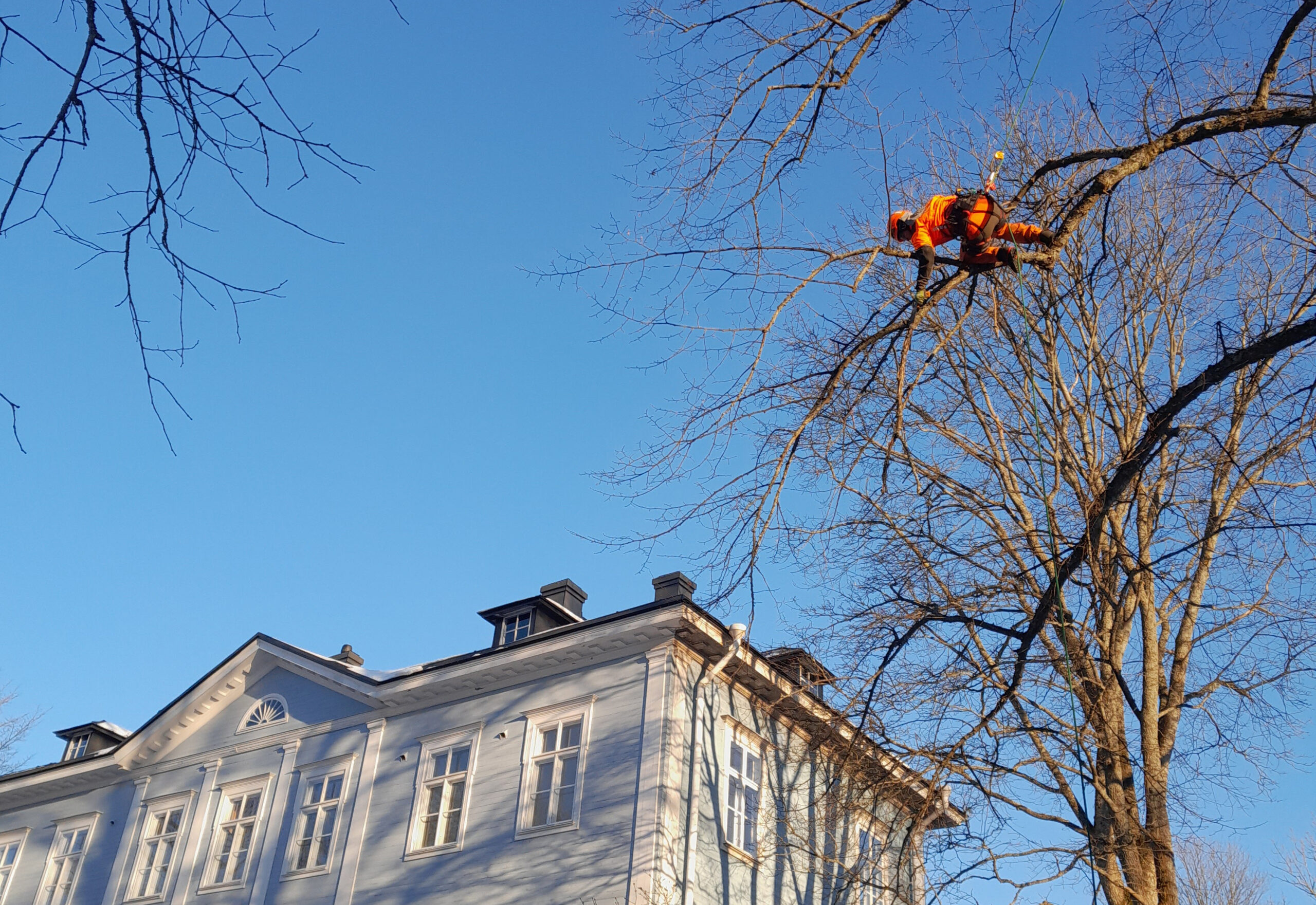 Puiden hoitoleikkaus kiipeilytekniikoita käyttäen