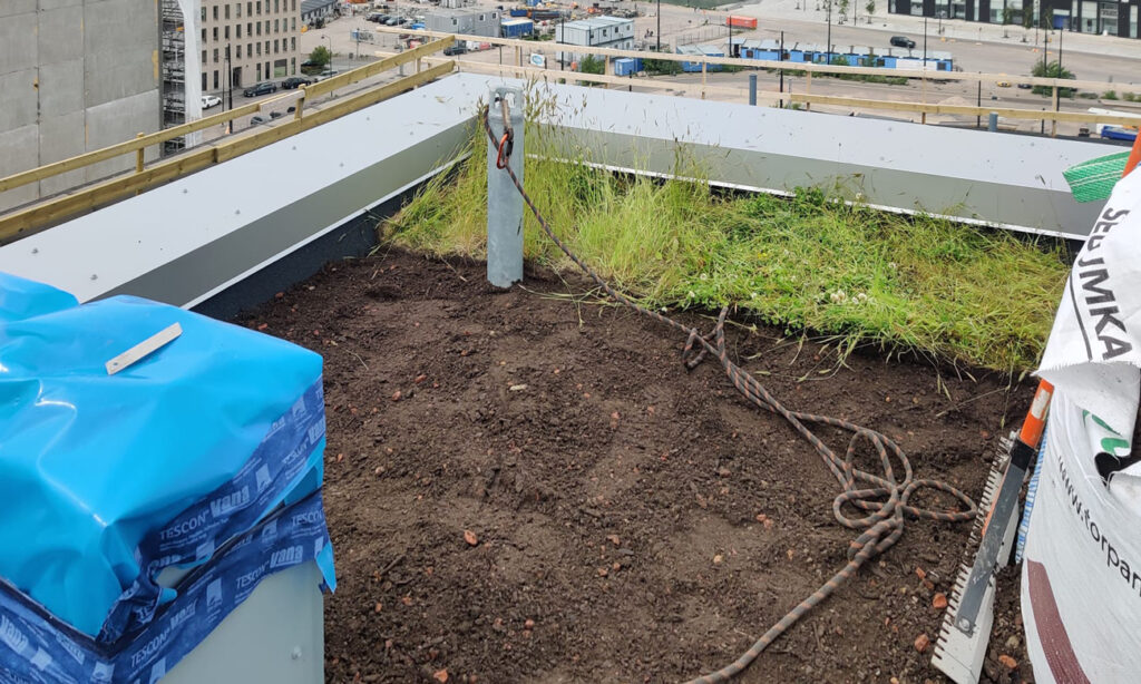 Vuosaaren huipun opaskontit, Helsinki, 2022 Nordic Green Roof® Kotimainen palosertifioitu maksaruohomatto kasvatetaan Tammisaaressa, Raaseporissa.