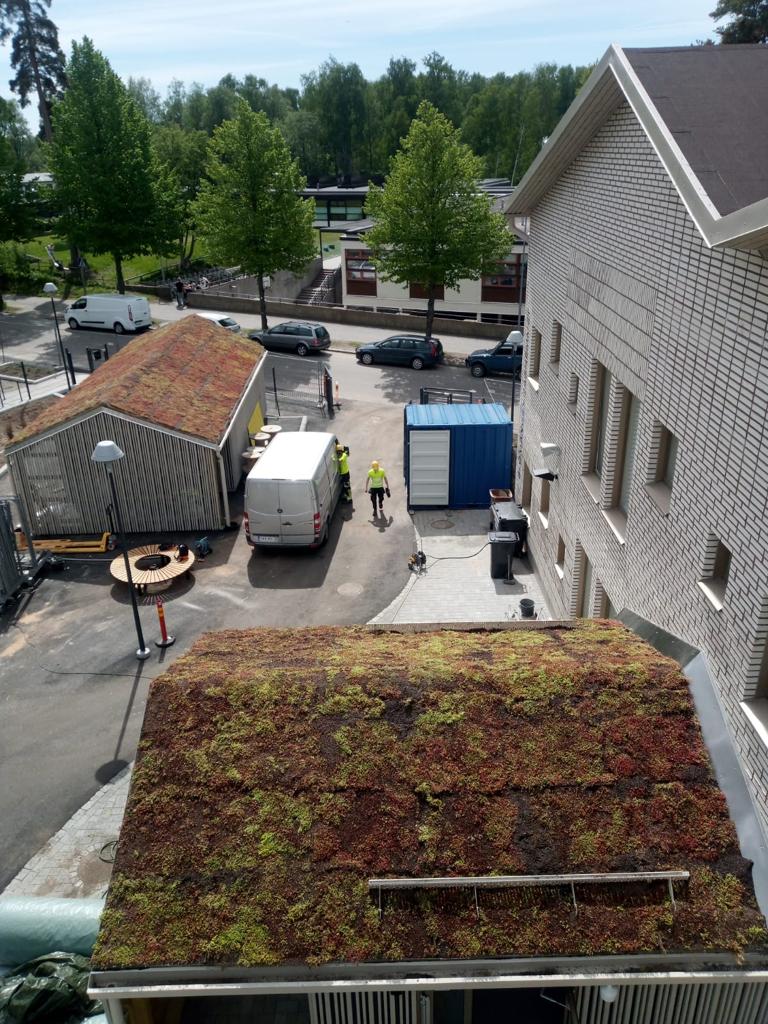 Helsingin kielilukio, Helsinki, 2023 Nordic Green Roof® kotimainen palosertifioitu maksaruohomatto kasvatetaan Tammisaaressa, Raaseporissa.