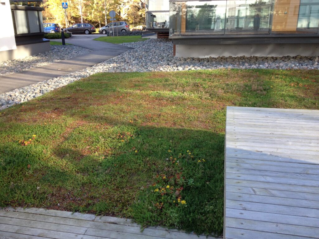 Lauttasaari, Helsinki, 2013Viherkattoja kansipihoilla ja oleskelualueilla.Nordic Green Roof® kotimainen palosertifioitu maksaruohomatto kasvatetaan Tammisaaressa, Raaseporissa.