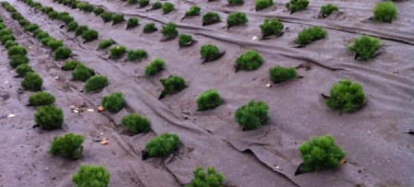 Agroksenmäki 850 m2 Eg Weed UB biomat installed on plantation areas to prevent light surface erosion and to keep weeds away.