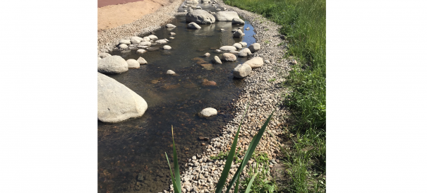Rinne vahvistettu Soilwebillä, päällä perennamattoa.