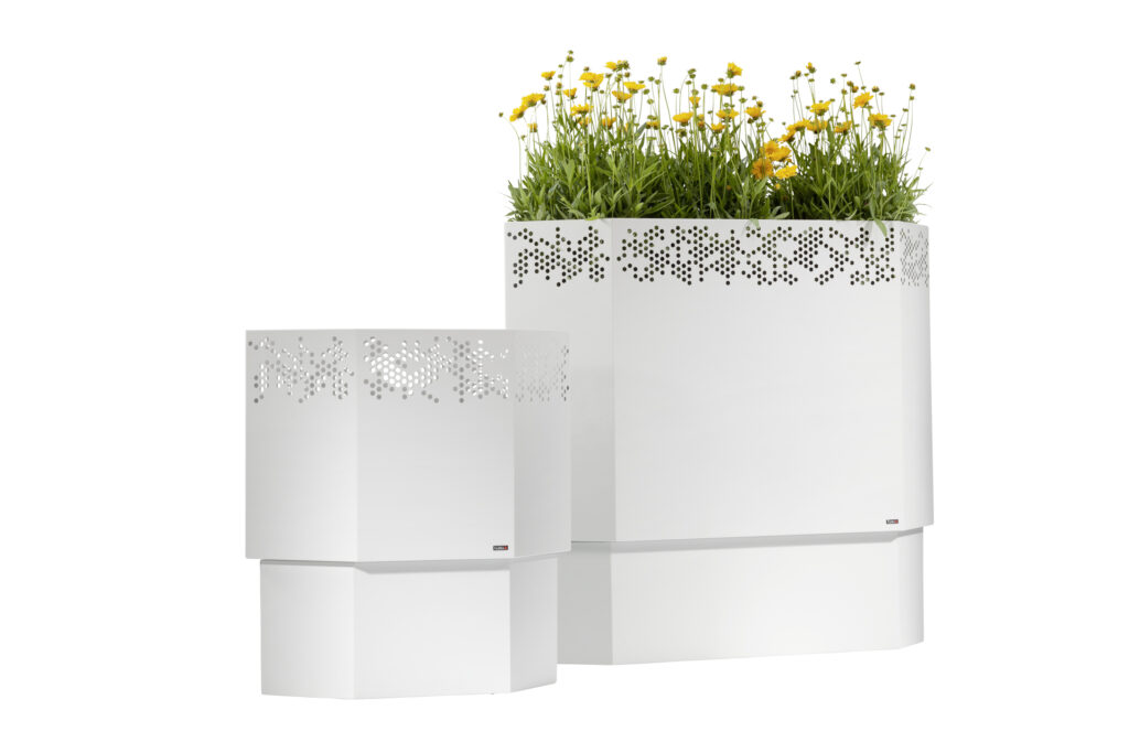 Flora- valikoimaan kuuluu laaja valikoima istutusastioita ja kukkaruukkuja, joiden monipuoliset muodot ja värit sopivat saumattomasti erilaisiin arkkitehtonisiin ympäristöihin. Kaikki istutusastiat on valmistettu jauhemaalatusta metallista tai Corten-teräksestä, ja sisäosat ovat alumiinia.