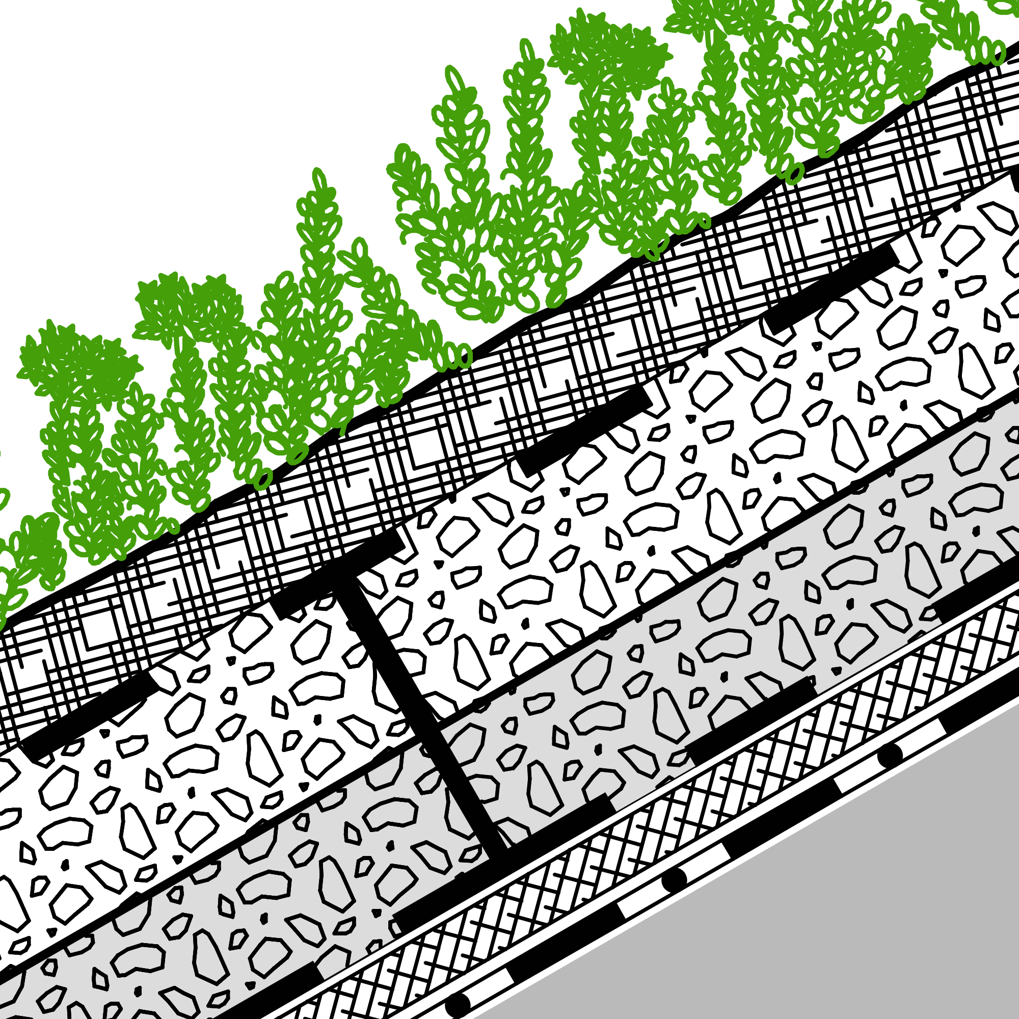Järjestelmäratkaisu ”Jyrkät viherkatot” perustuu ZinCon Georaster® tuotteeseen, joka sopii viherkatoille joiden kaltevuus on 25-35°. Yli 35° katoille voidaan tehdä projektikohtaisia erikoisratkaisuja ZinCon insinöörien suunnitelmien mukaan.