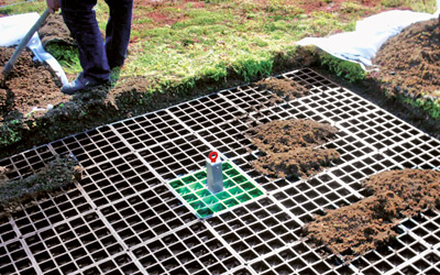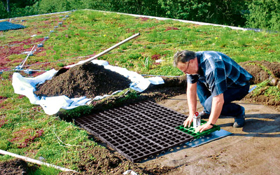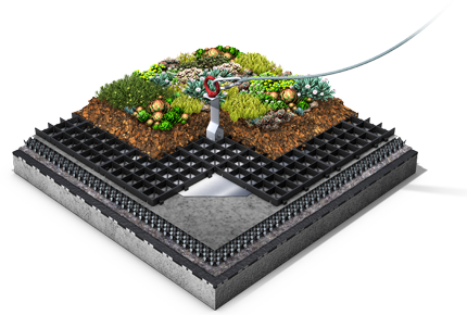 Kattoluukut, kaivot ja läpiviennit voidaan integroida järjestelmään. Elementit asennetaan suoraan kuivatuskerroksen päälle ja pysyvät paikallaan päällä olevan kerroksen painon ansiosta.